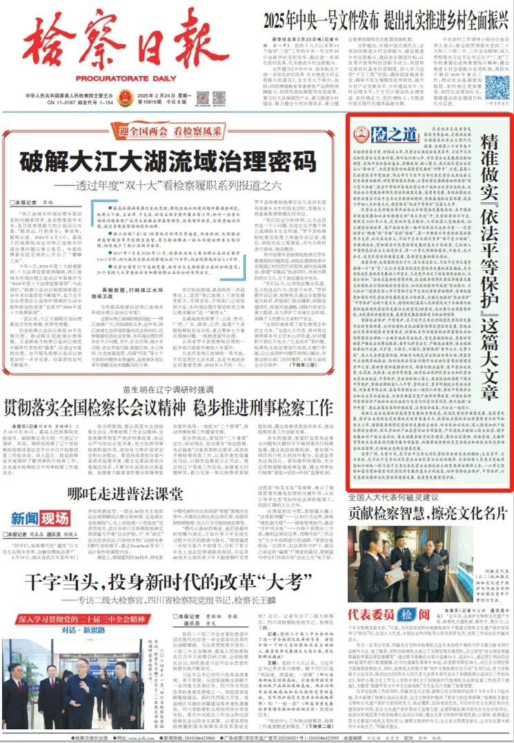 民营经济是高质量发展的重要基础,是推动我国全面建成社会主义现代化强国、实现第二个百年奋斗目标的重要力量。时隔近七年,民营企业座谈会再度召开。习近平总书记和民营企业家面对面,倾听他们的心声,对民营企业发展提出殷切期望。这场开在初春的盛会,撑腰鼓劲、凝心聚力,再次给民营企业家注入“强动力”,为民营经济吹响高质量发展的“冲锋号”。日前,最高人民检察院召开党组会,传达学习习近平总书记在民营企业座谈会上的重要讲话精神,研究贯彻落实举措,应勇检察长强调要始终坚持“两个毫不动摇”,依法平等保护各类经营主体产权和企业家合法权益,运用法治力量服务保障民营经济健康发展、高质量发展。各级检察机关要坚决落实习近平总书记重要讲话精神,紧跟最高检决策部署,找准工作切入点和着力点,精准做实“依法平等保护”这篇大文章。