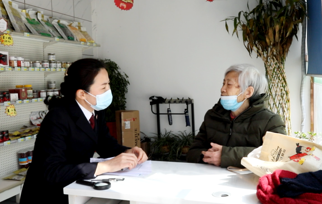 围绕药品说明书字小问题,检察官在药店随机采访来购药的老年人。