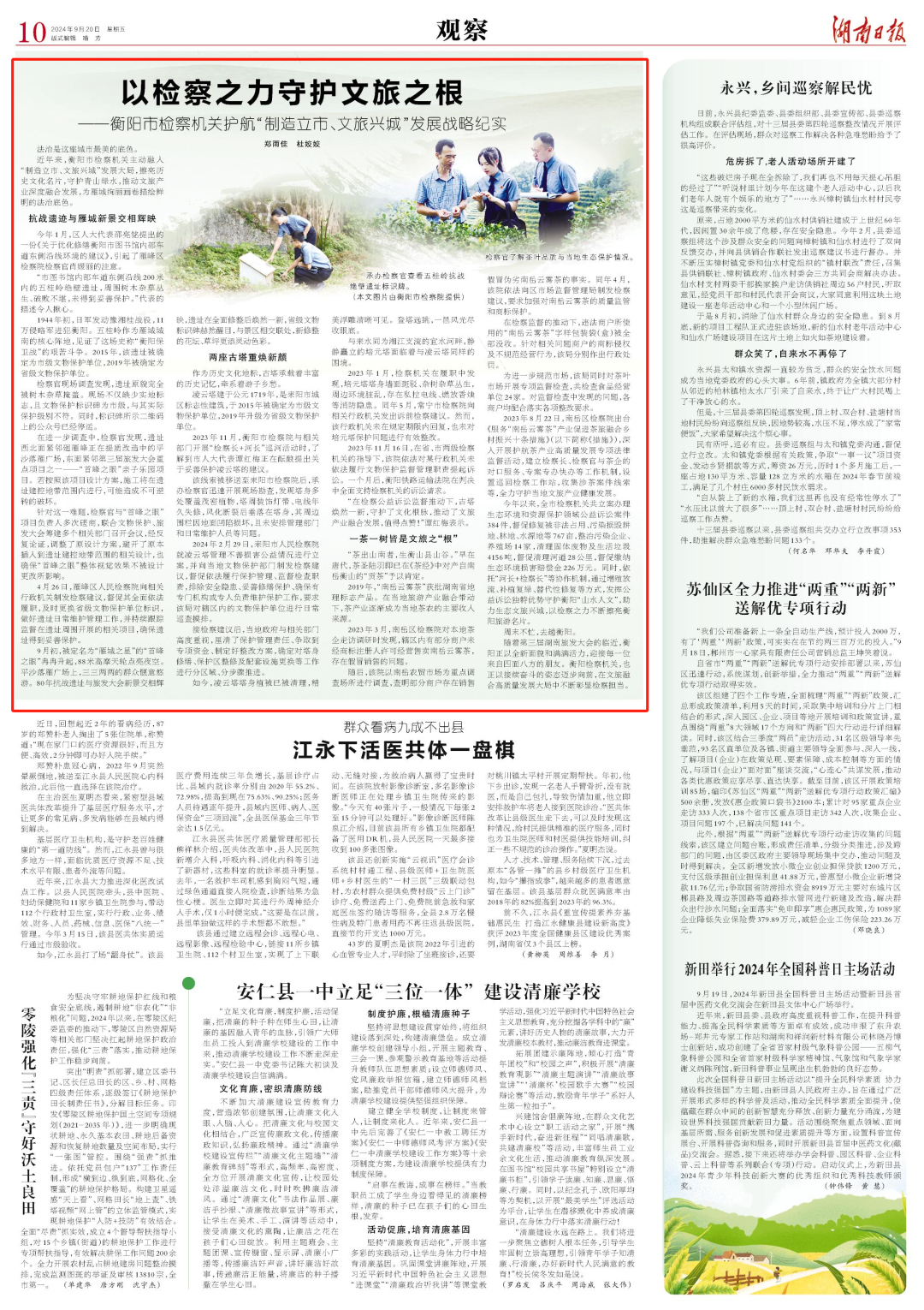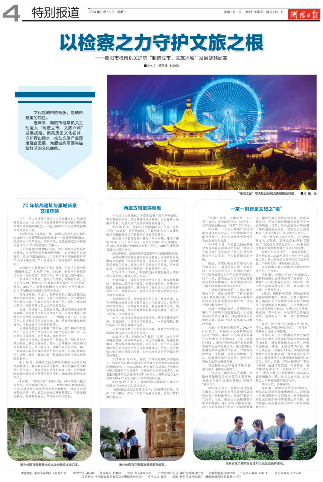 近年来,衡阳市检察机关主动融入“制造立市、文旅兴城”发展战略,擦亮历史文化名片,守护青山绿水,推动文旅产业深度融合发展,为雁城绚丽画卷描绘鲜明的文化底色。