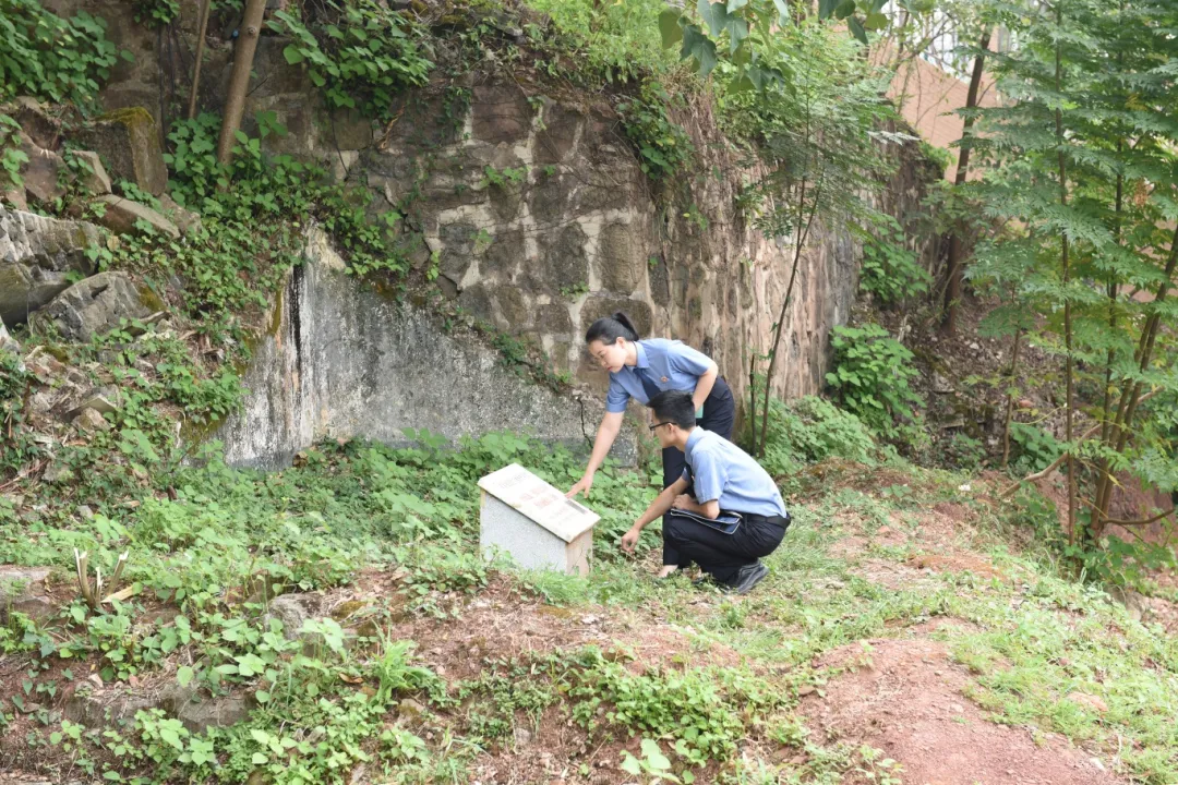 在现场勘查、取证中,检察官看到,遗址原貌完全被树木和杂草掩盖。现场不仅缺少实地标志,且文物保护标识碑为市级,与其实际保护级别不符。同时,标识碑上所示二维码所导向的公众号已经停运。